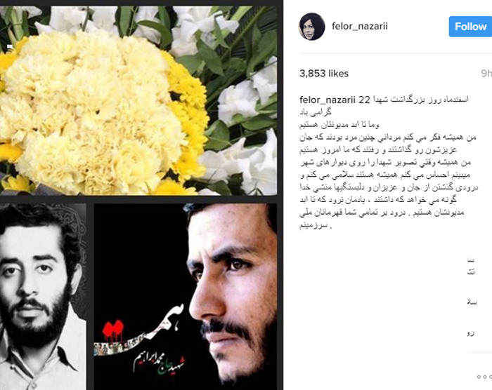 وی در روز بزرگداشت شهدا در اینستاگرامش نوشت: