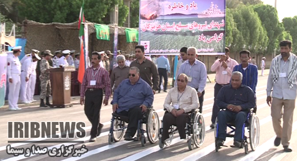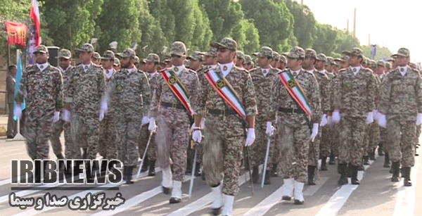 نیروهای مسلح مستقر در هرمزگان در ساحل خلیج فارس رژه رفتند.