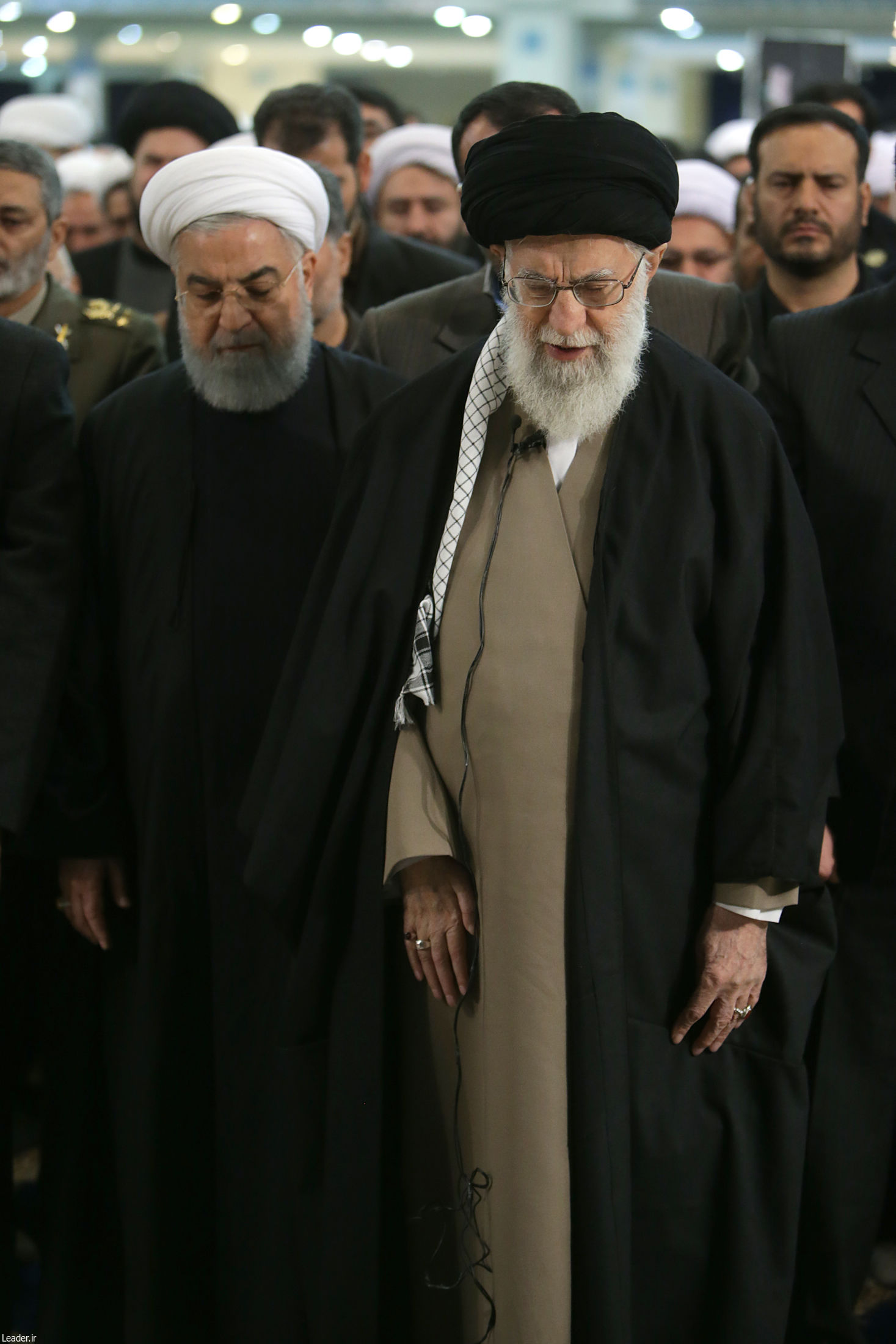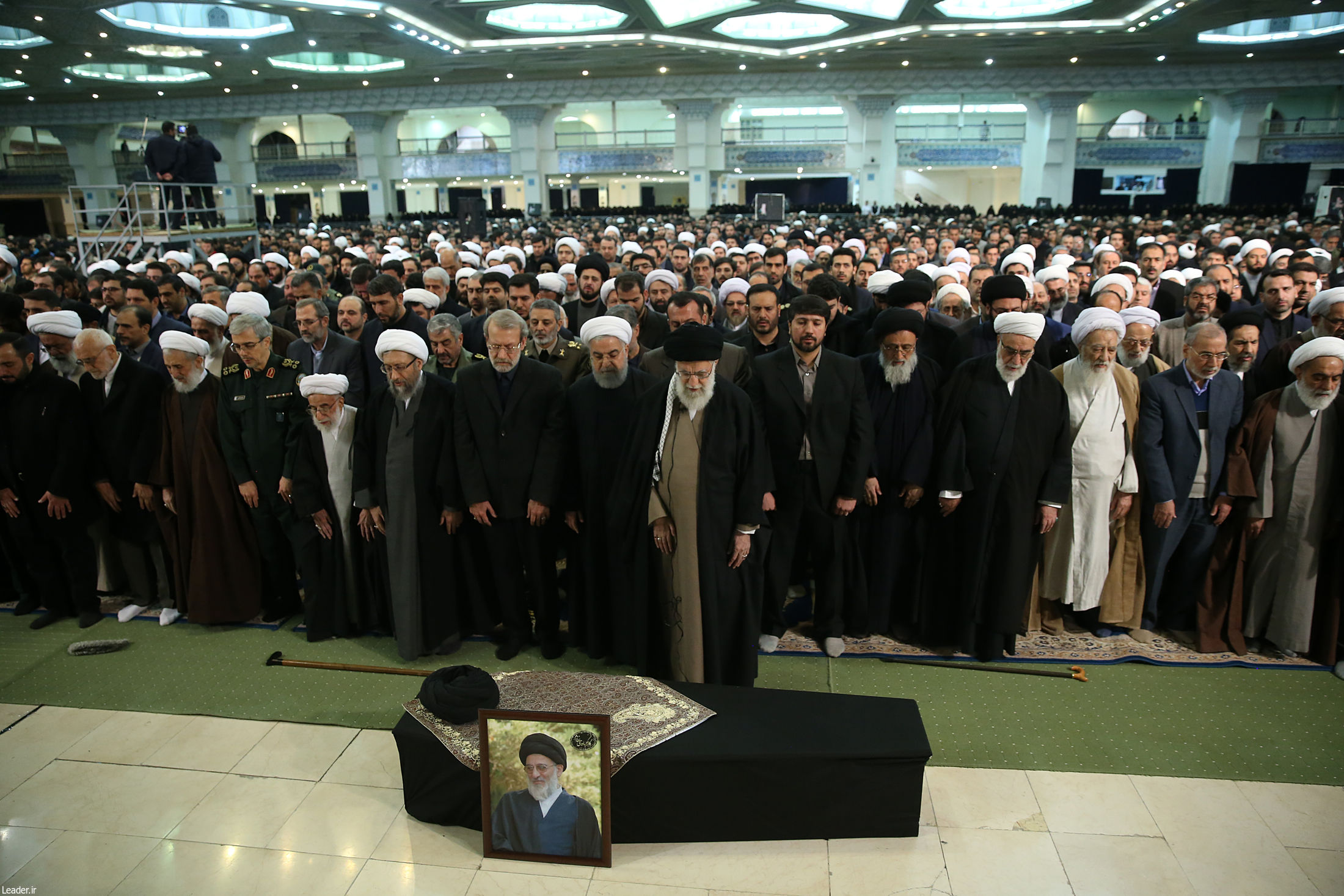 ۰۹:۳۰ رهبر انقلاب بر پیکر آیتالله شاهرودی نماز را اقامه کردند