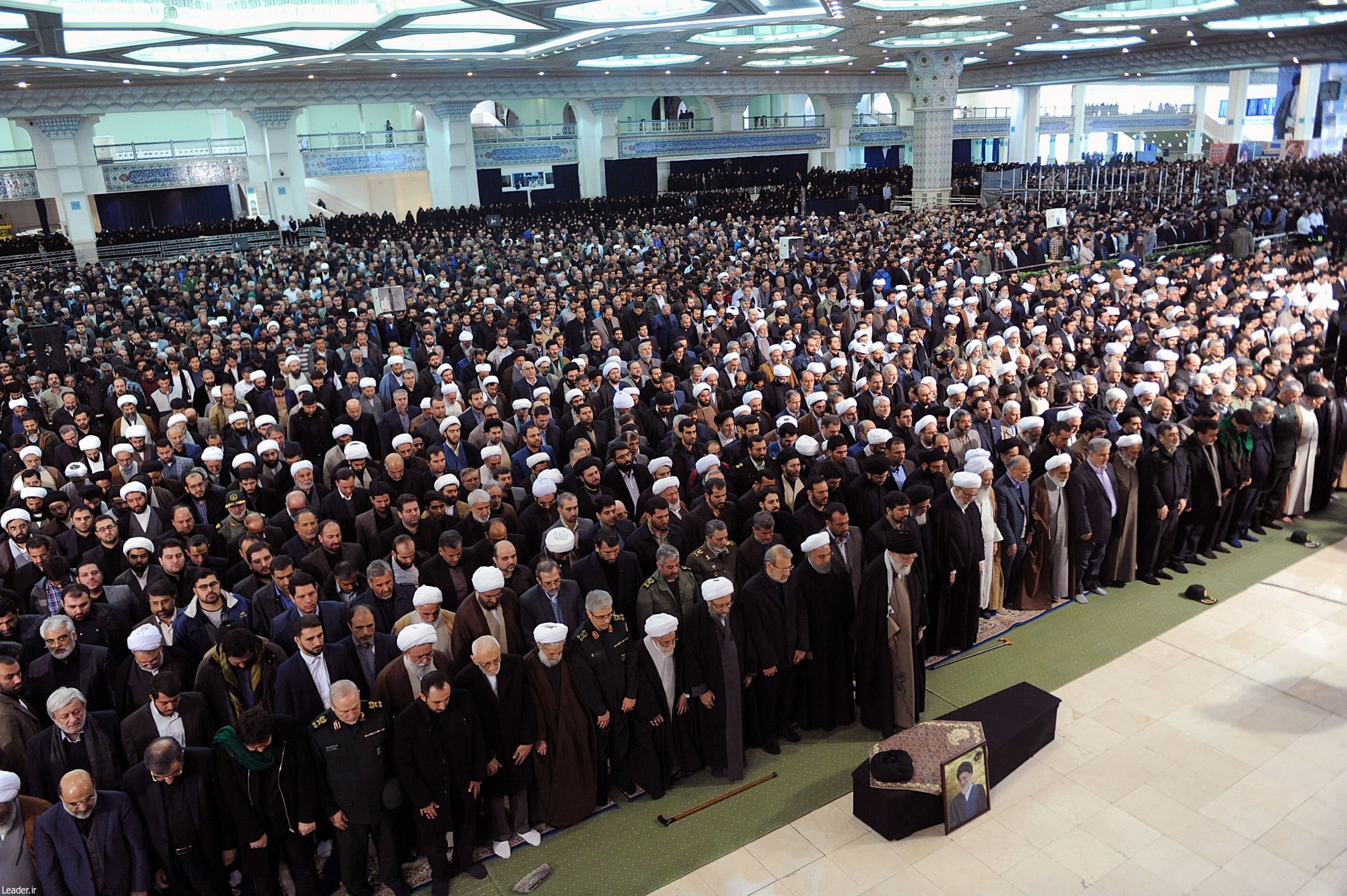 رهبر معظم انقلاب اسلامی نماز را بر پیکرآیت الله هاشمی شاهرودی رئیس فقید مجمع تشخیص مصلحت نظام در مصلای بزرگ امام خمینی (ره) اقامه کردند.