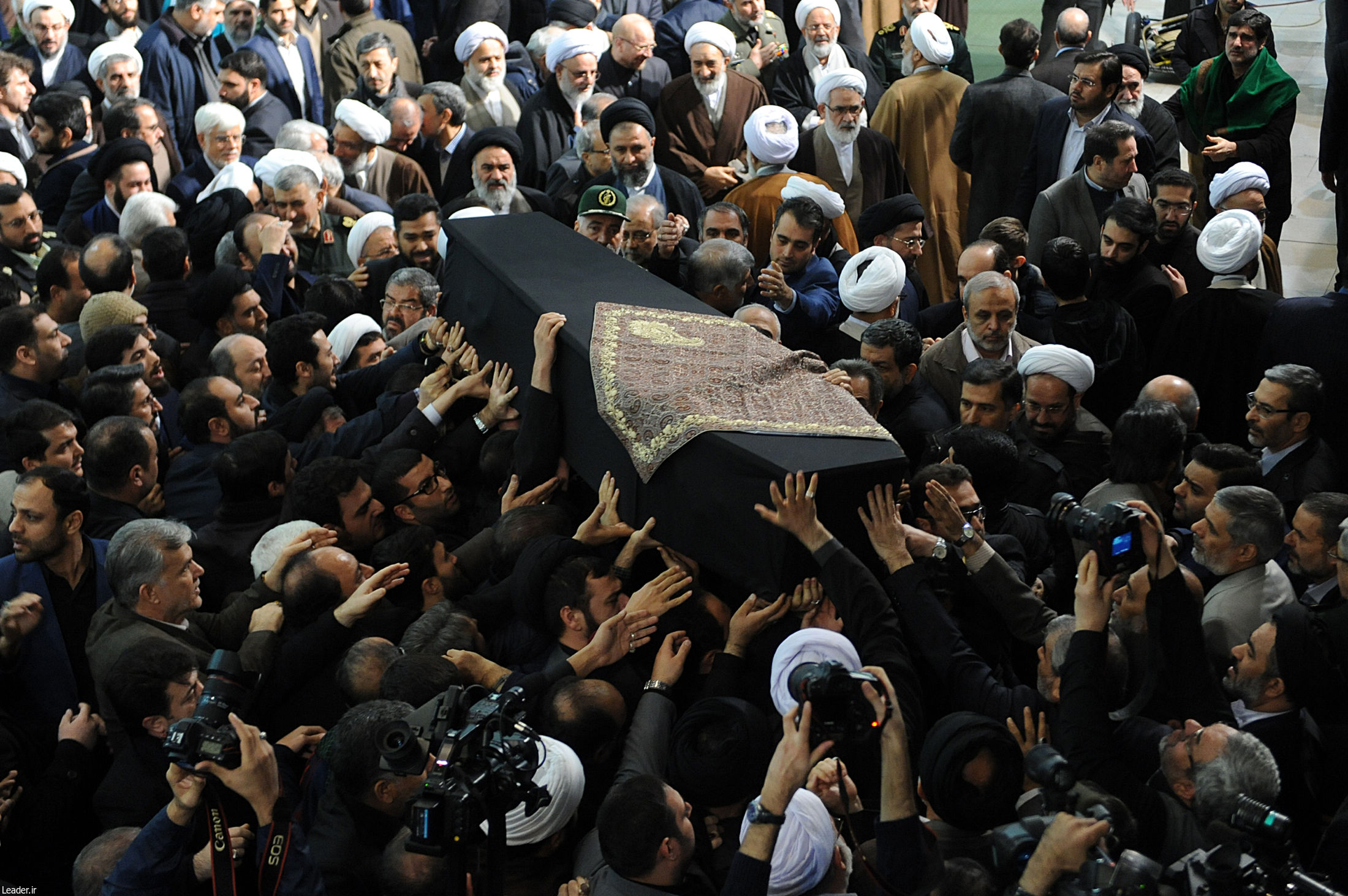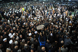پس از اقامه نماز بر پیکر رئیس فقید مجمع تشخیص مصلحت نظام به امامت مقام معظم رهبری، پیکر آن مرحوم از ضلع شرقی شبستان مصلای بزرگ امام خمینی (ره) بر دوش مردم قدرشناس تهران در حال تشییع است.