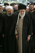 ۰۹:۴۳ حضور رئیس جمهور و اعضای دولت در مراسم تشییع آیت الله هاشمی شاهرودی