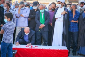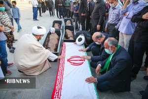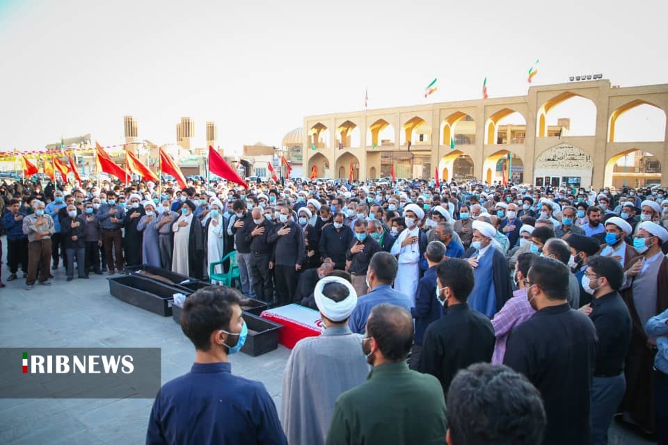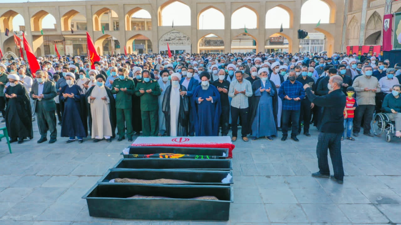 در این مراسم که جمعی از مسئولان و قشر‌های مختلف مردم حضور داشتند، آیت الله محمدرضا ناصری نماینده ولی فقیه در و امام جمعه یزد بر این پیکر‌ها نماز اقامه کرد.