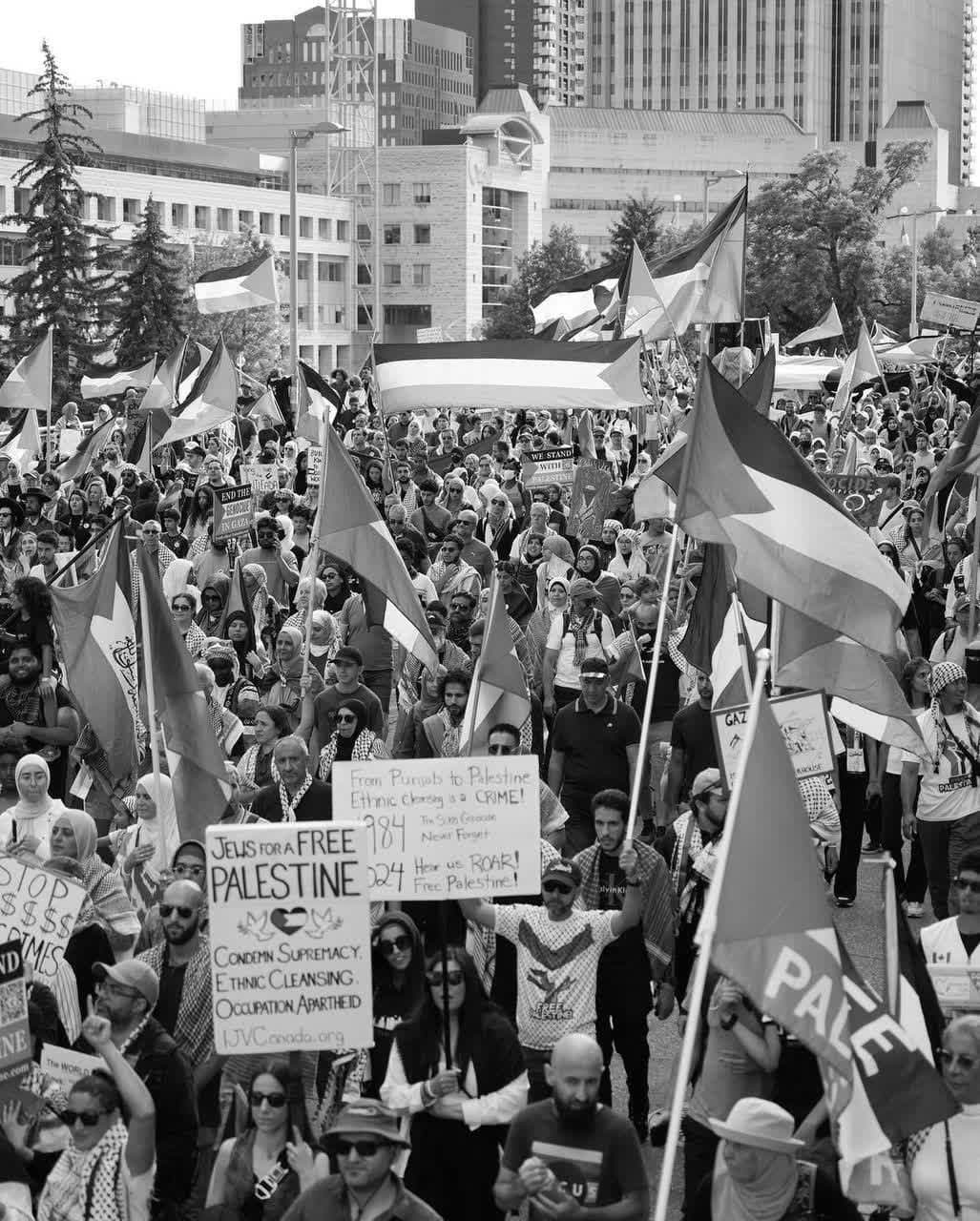 کانال تلگرامی شبکه خبری قدس تصاویری از تظاهرات گسترده در کانادا در محکومیت جنایت رژیم صهیونیستی در مدرسه التابعین در غزه منتشر کرد که به شهادت بیش از صد آواره فلسطینی منجر شد.