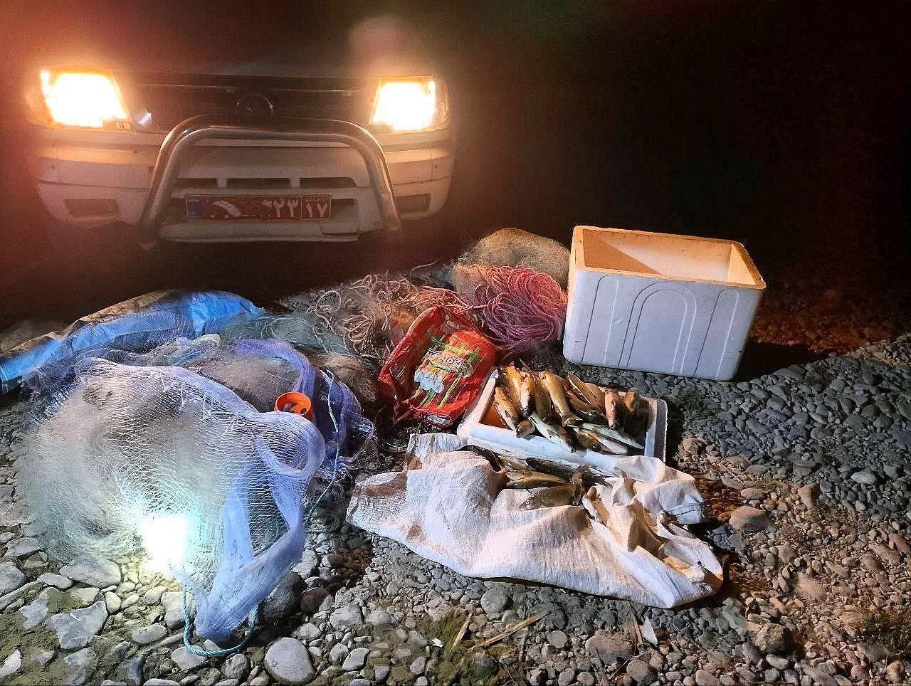 اصلانی تشریح کرد: از صیادان متخلف لاشه تعدادی سیاهماهی رودخانهای، سه رشته تور دامی، دو رشته تور سالیک و چهار عدد قلاب ماهیگیری کشف و ضبط شد. همچنین در جریان دستگیری زندهگیران پرنده، چهار قطعه سهره طلایی، دو عدد قفس و یک تور مخصوص زندهگیری به دست آمد.