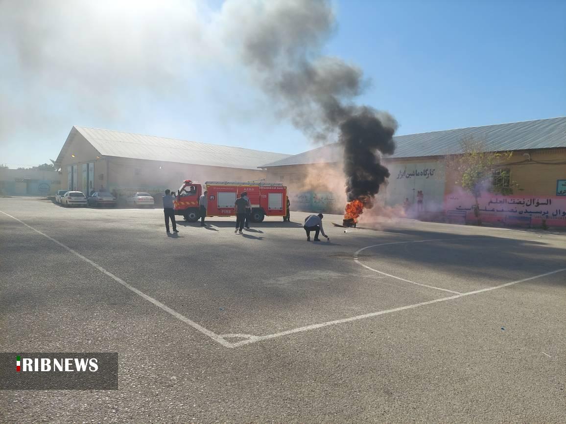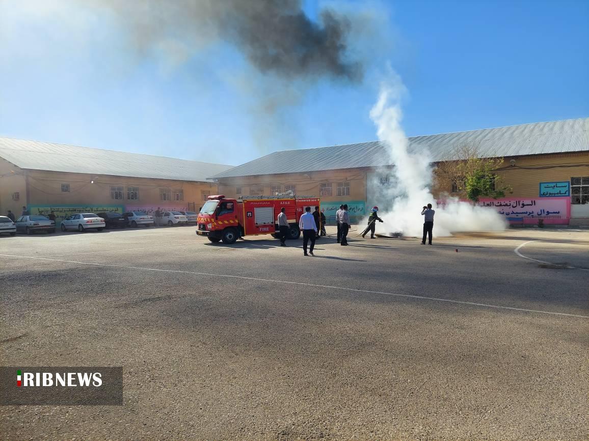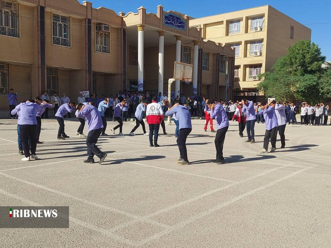 در این مراسم مانور اطفا حریق و مقابله با حمله هوایی توسط دانش آموزان به اجرا درآمد.